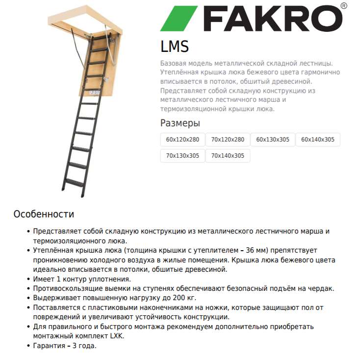 Складная металлическая лестница LMS 70x120x280 FAKRO