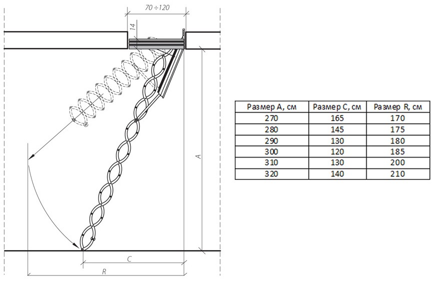 Металлическая огнестойкая лестница LSF 60х120x280-300 FAKRO