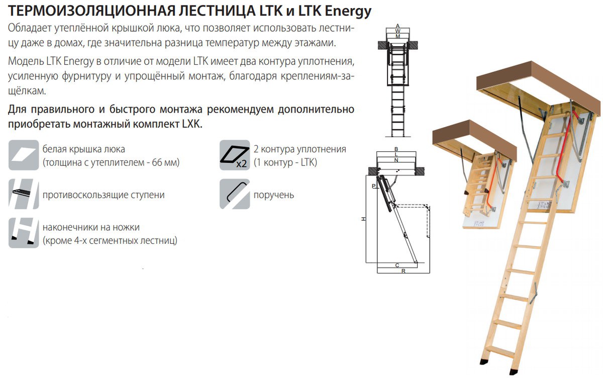 Термоизоляционная складная чердачная лестница LTK 70x130x280 FAKRO