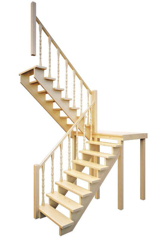 Деревянная межэтажная лестница Лес-62 универсальная (поворот 180°)