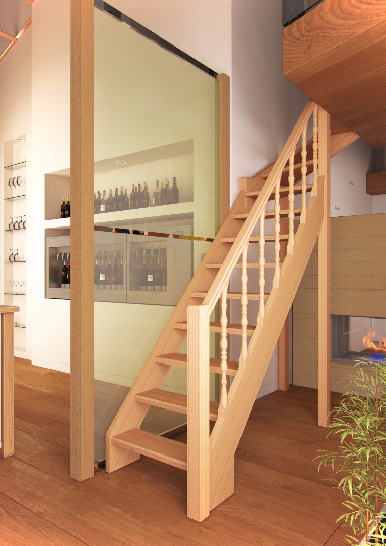Деревянная межэтажная лестница Лес-715 (поворот 90°)