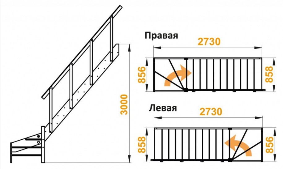 Лестница из сосны ЛС-14м (с поручнем) Правая
