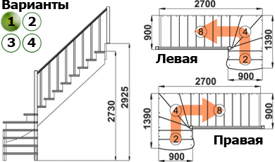 Лестница из сосны К-001м (вариант №1) Левая