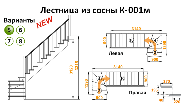 Лестница из сосны К-001м (вариант №5) Левая