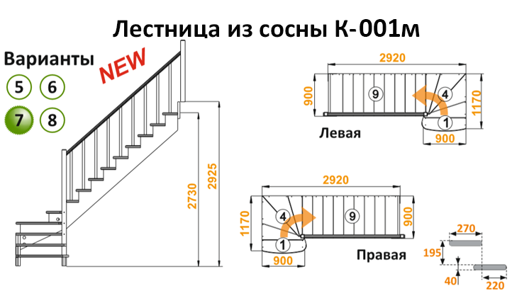 Лестница из сосны К-001м (вариант №7) Левая