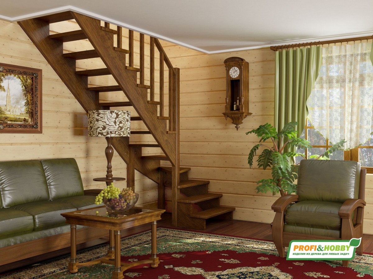 Лестница из сосны К-001м (вариант №3) Левая