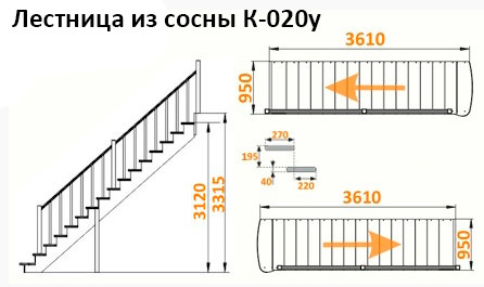 Лестница из сосны К-020у