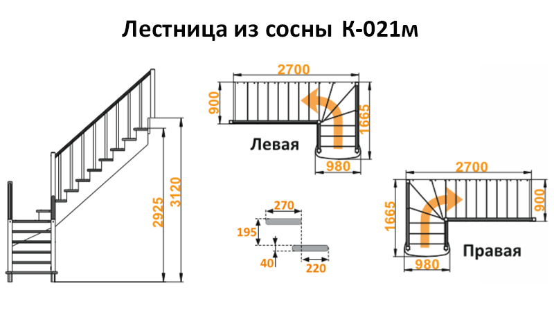 Лестница из сосны К-021м Левая