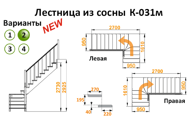 Лестница из сосны К-031м (вариант №2) Левая