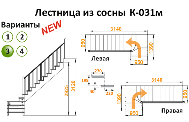 Лестница из сосны К-031м (вариант №3) Левая