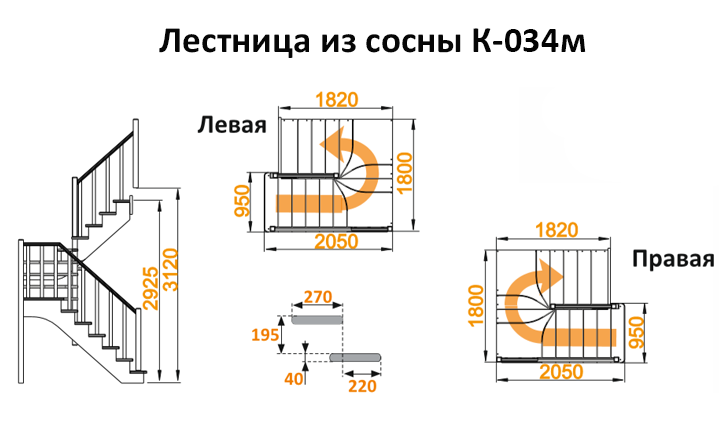 Лестница из сосны К-034м Левая