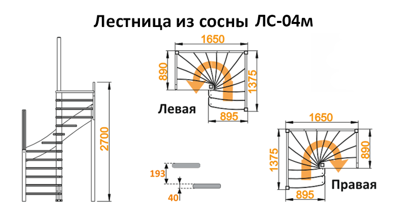 Лестница из сосны ЛС-04м Правая