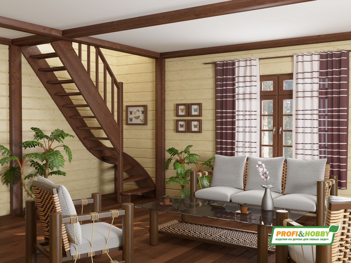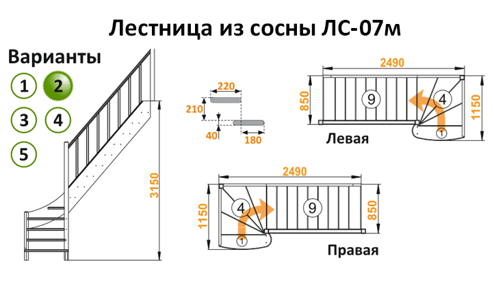 Лестница из сосны ЛС-07м (вариант №2) Правая