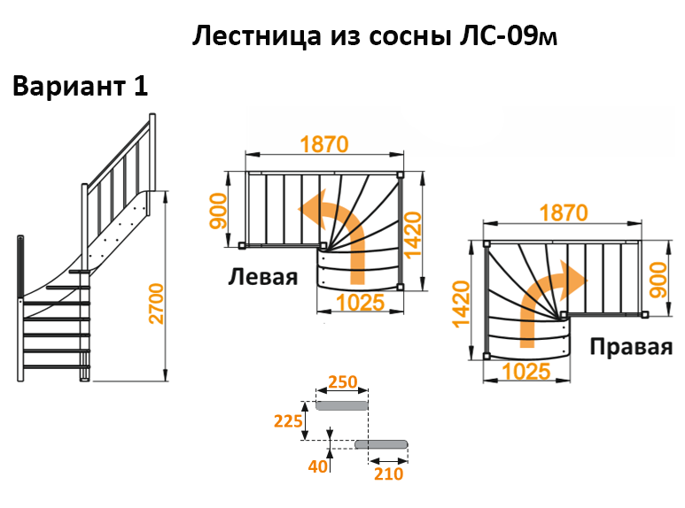 Лестница из сосны ЛС-09м (вариант №1) Правая