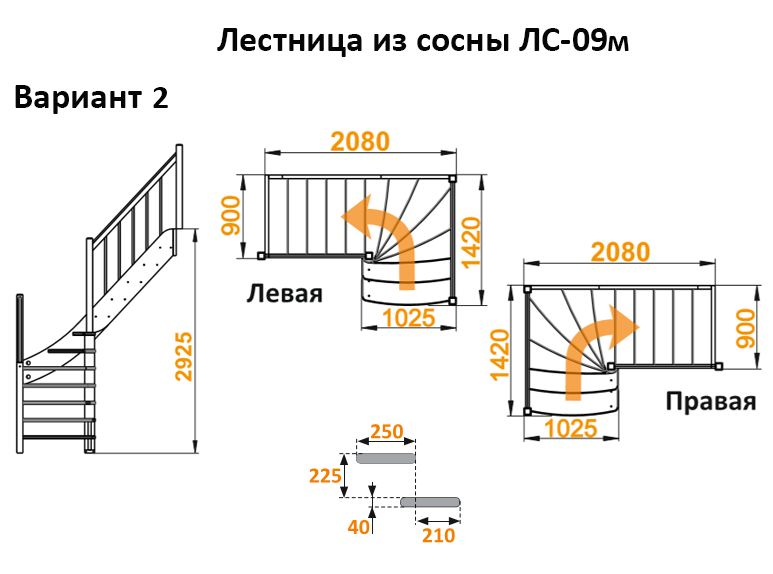 Лестница из сосны ЛС-09м (вариант №2) Левая