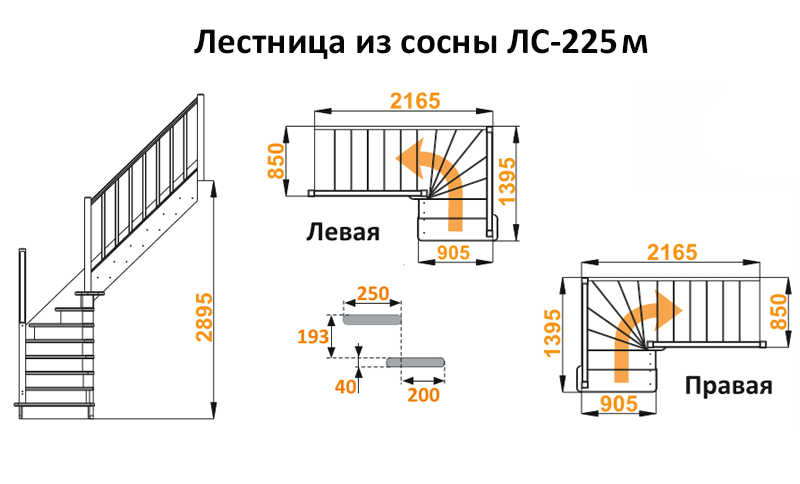 Лестница из сосны ЛС-225м Левая NEW