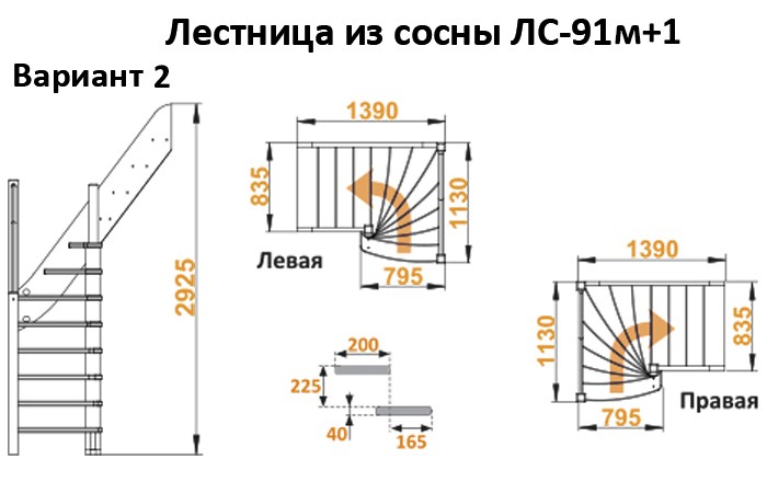 Лестница из сосны ЛС-91м +1 (Вариант №2) Левая