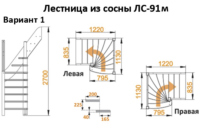 Лестница из сосны ЛС-91м (Вариант №1) Левая
