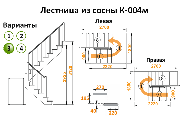 Лестница из сосны К-004м (вариант №3) Левая