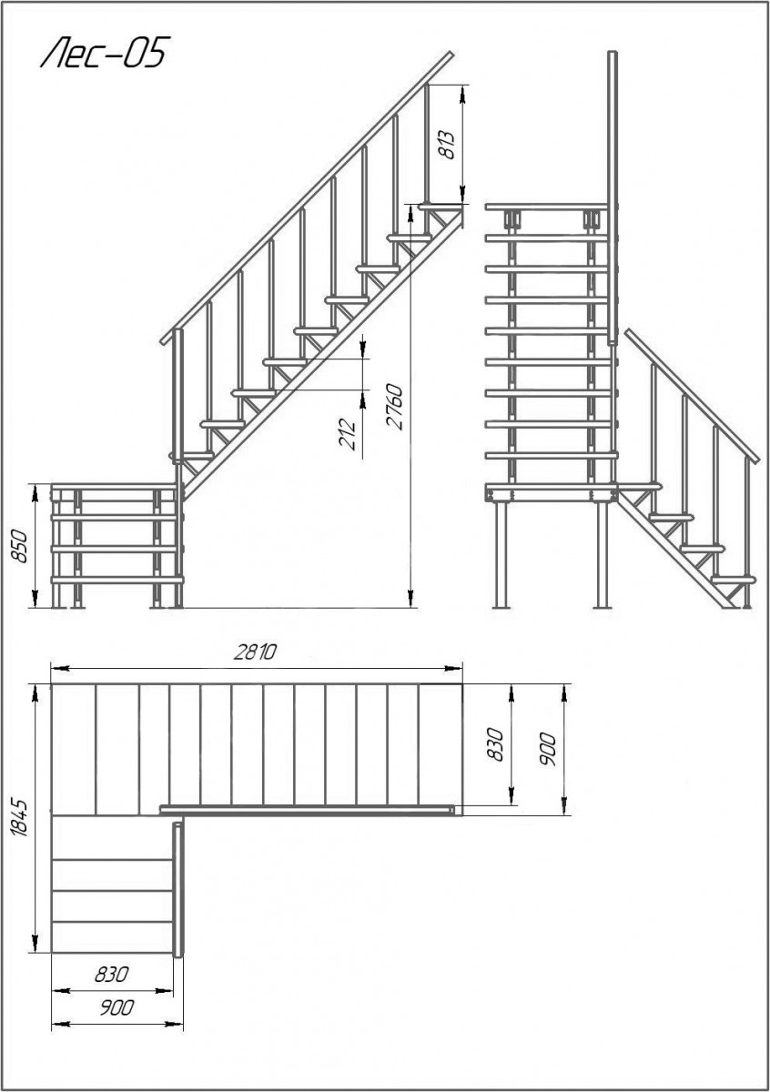 Комбинированная межэтажная ЛЕС-05 (поворот 90°, высота 2,76 м)