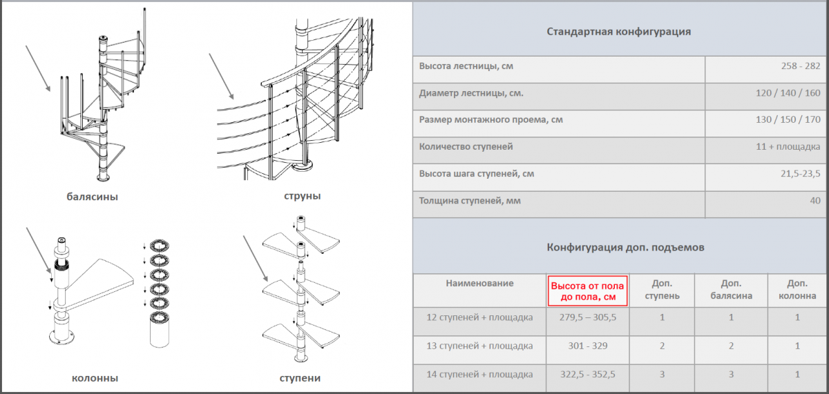 Винтовая лестница Montreal Classic, диаметр 140 см, серый