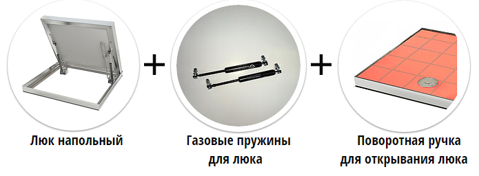 Напольный люк с амортизаторами 700*700*54 МАКС (Поворотная ручка)