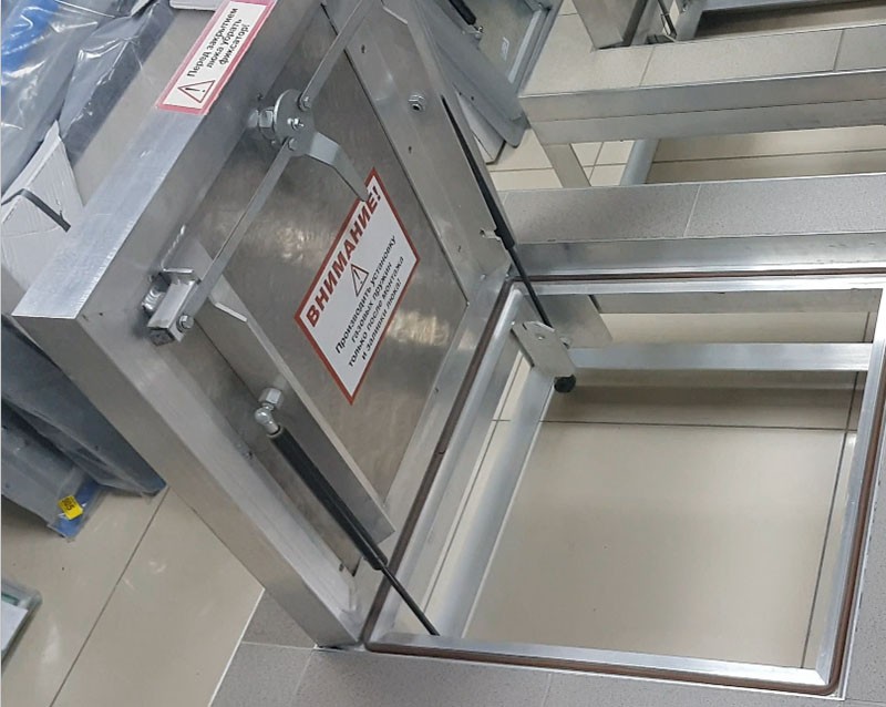Напольный люк с амортизаторами 800*800*54 МАКС (Поворотная ручка)